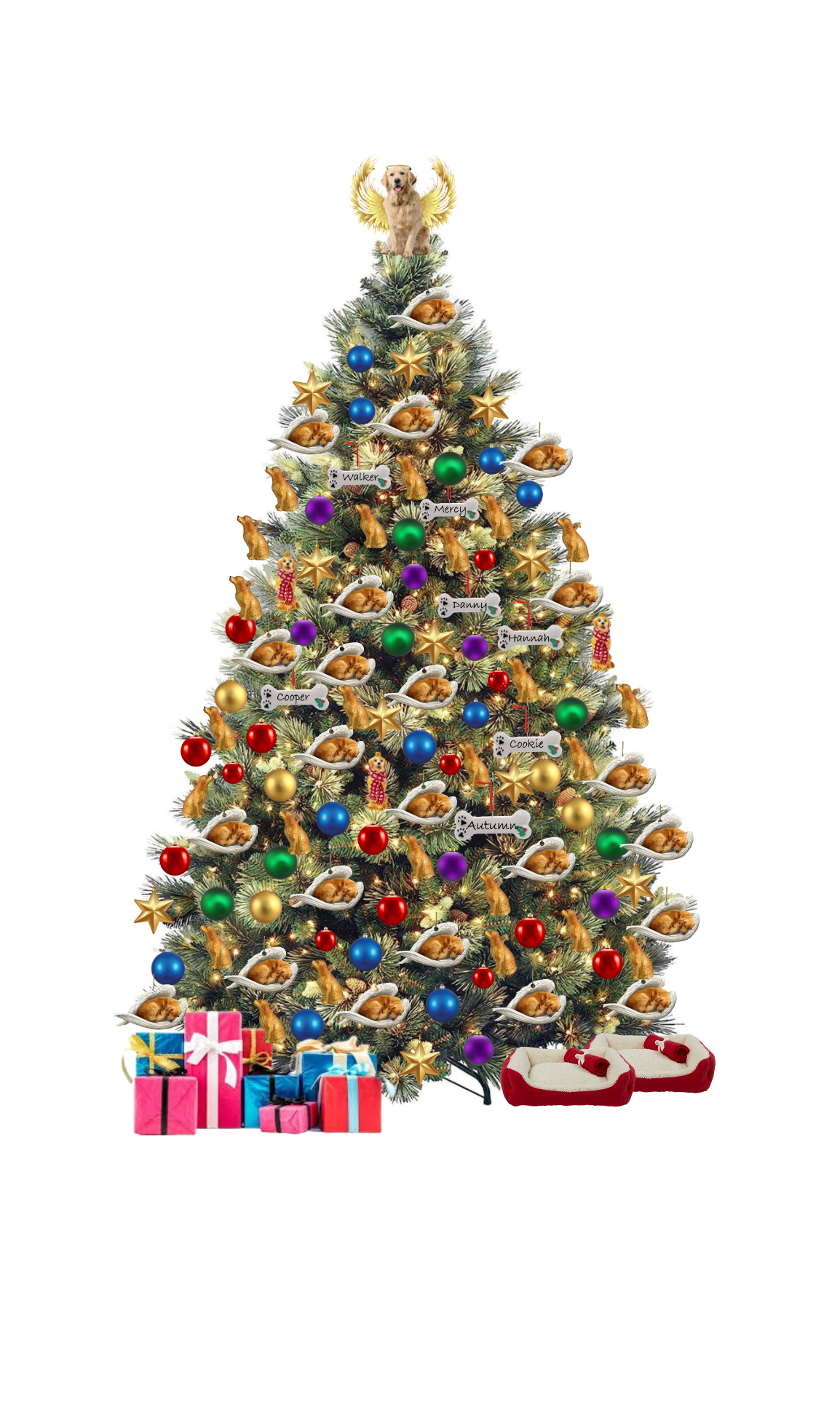 Your donations decorate the tree with ornaments and presents and may be made in memory of or in honor of a person or a dog. To donate and help dogs in need, click here